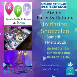 Carine EXPERT, Responsable du Relai Petite Enfance, est heureuse de vous convier, à l'occasion de la semaine de la petite enfance, au 2eme atelier d'initiation "Snoezelen".