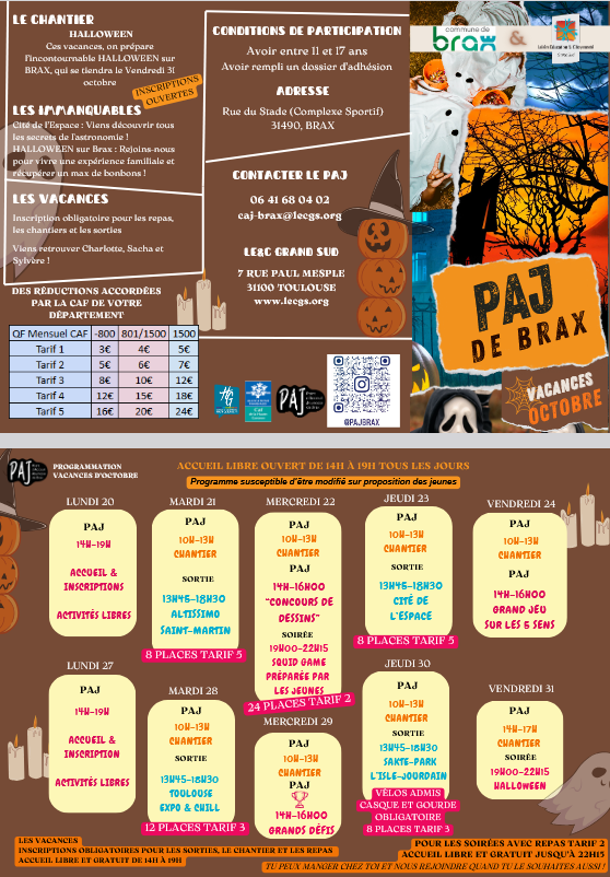 Le PAJ est une structure d’animation habilitée par la Direction Régionale de la Jeunesse et des Sports. Une directrice jeunesse et un animateur jeunesse qualifiés et diplômés accueillent et proposent des loisirs éducatifs aux jeunes braxéens âgés de 11 à 17 ans.